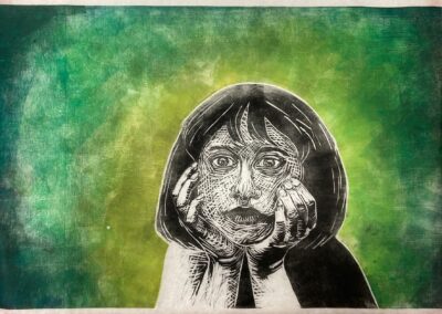 Noora Kokkinen inspiroituu tarinoista, unista sekä ajan eri kerrostumista. Taiteilija asettuu seuraamaan elämän hetkiä ja tutkii niitä kuvissaan mm. ihmiskasvojen ilmentämien tunteiden kautta. Kokkinen haastaa itsensä vaihtelevilla tekniikoilla ja sekoittaa niitä keskenään. Hän on myös käsillä tekijä ja opiskellut tilasuunnittelua, taideteollista ja teknistä alaa.